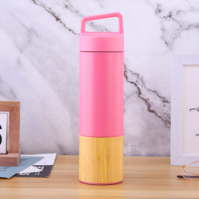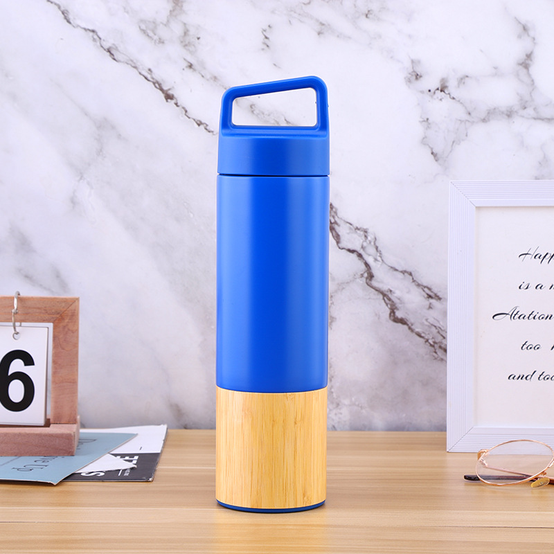 زجاجة ماء من الخيزران والجلد الصناعي PU