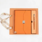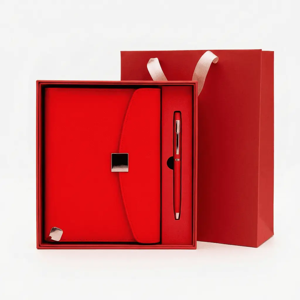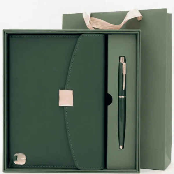 Optez pour l’élégance intemporelle avec le Coffret 2 pcs block note, stylo REG. Ce set classique est un incontournable de notre gamme de coffret bloc notes 2 pièces, parfait pour le professionnel qui valorise l’authenticité et le raffinement. Le coffret est magnifiquement présenté et contient un bloc-notes ou organiseur dans une riche couleur marron foncé (souvent appelée chocolat ou moka), agrémenté d’une fermeture à boucle chic. Il est complété par un stylo au design soigné, garantissant une expérience d’écriture haut de gamme. Idéal pour un cadeau d’affaires traditionnel ou pour un accessoire de bureau vintage et durable, ce set s’adresse à ceux qui recherchent la qualité et la simplicité. Si vous cherchez un carnet de notes marron avec un stylo assorti, le Coffret REG est la solution parfaite pour un bureau élégant.