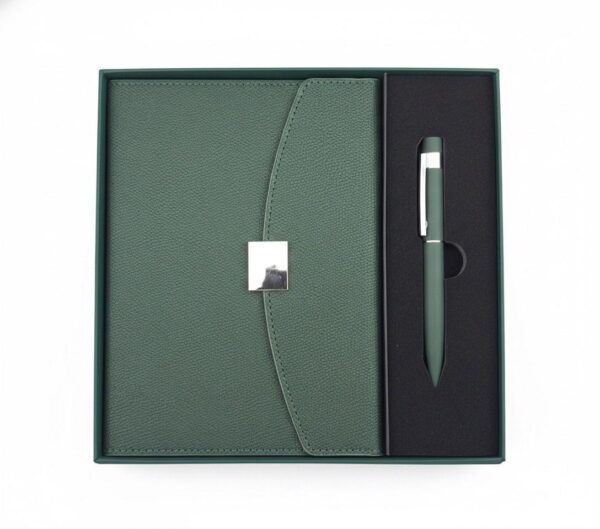 Un carnet de notes haut de gamme : Doté d’une couverture rigide en similicuir à grain fin, il offre un toucher agréable et une résistance durable. Sa fermeture aimantée est ornée d’une plaque métallique élégante, idéale pour une gravure ou un marquage personnalisé.