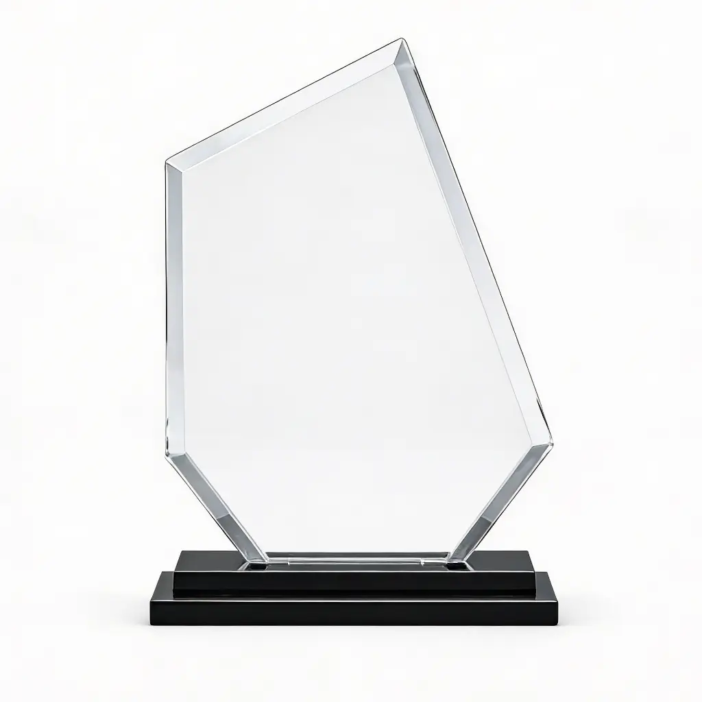 Ce trophée en verre haut de gamme se distingue par sa forme pentagonale irrégulière, symbole de modernité et de dynamisme. Conçu pour les entreprises et organisations qui souhaitent sortir des sentiers battus, ce modèle allie la noblesse du verre à une silhouette architecturale forte.