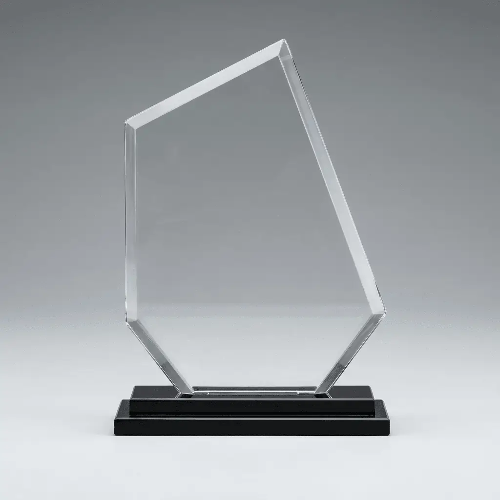 Ce trophée en verre haut de gamme se distingue par sa forme pentagonale irrégulière, symbole de modernité et de dynamisme. Conçu pour les entreprises et organisations qui souhaitent sortir des sentiers battus, ce modèle allie la noblesse du verre à une silhouette architecturale forte.